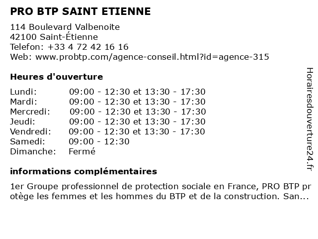 1 Accueil conseil retraite Agirc-Arrco de Saint-Etienne - Agence PRO BTP (Distance: 0,00 km) 114 Boulevard Valbenoîte, 42100 Saint-Étienne accueil, agence, agirc, arrco, btp, conseil, de, etienne, pro, retraite, saint 3 4 BTP CFA Loire (Distance: 1,96 km) 21 Rue de l'Apprentissage, 42000 Saint-Étienne aménagement, architecture, baies, bois, btp, cfa, charpente, escalier, fenêtres, loire, menuiserie, meuble, parquets, placard, portail, portes, pvc, store, ébénisterie 5 A2F Matériel & Solutions Btp (Distance: 2,90 km) - Rue Jean Moulin, 42150 La Ricamarie a2f, btp, chantier, machine, matériel, mécanique, professionnel, solutions 6 Temporis Saint-Etienne BTP (Distance: 3,30 km) 25 Rue des Aciéries, 42000 Saint-Étienne btp, etienne, saint, temporis |