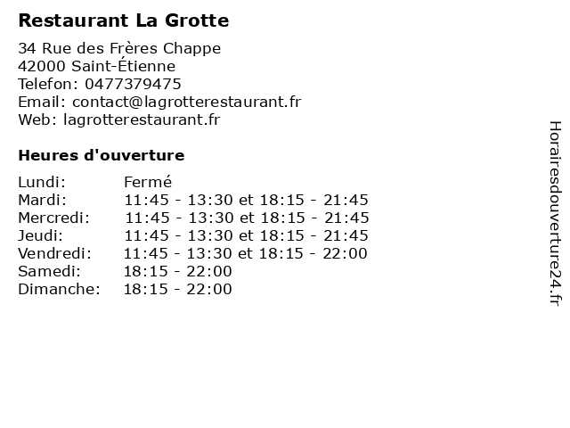 | Lundi | Fermé |