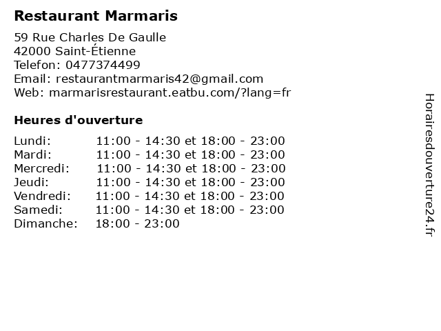 | Samedi | 11:00-14:30 et 18:00-23:00 |