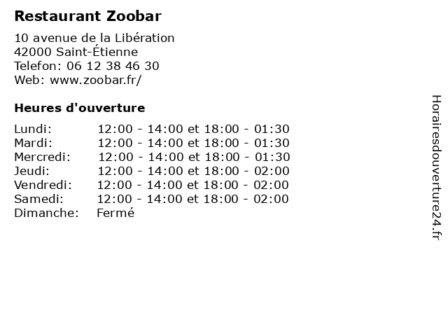 | Samedi | 12:00-14:00 et 18:00-02:00 |