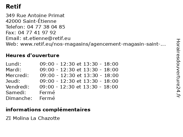| Lundi | 09:00-12:30 et 13:30-18:00 |