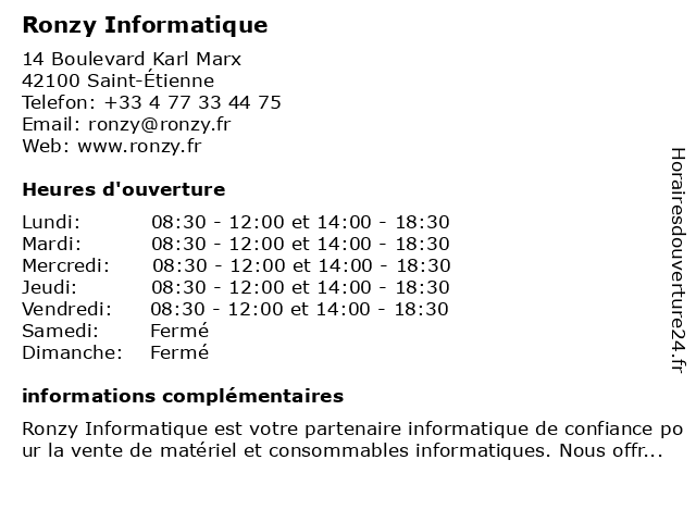 | Vendredi | 08:30-12:00 et 14:00-18:30 |