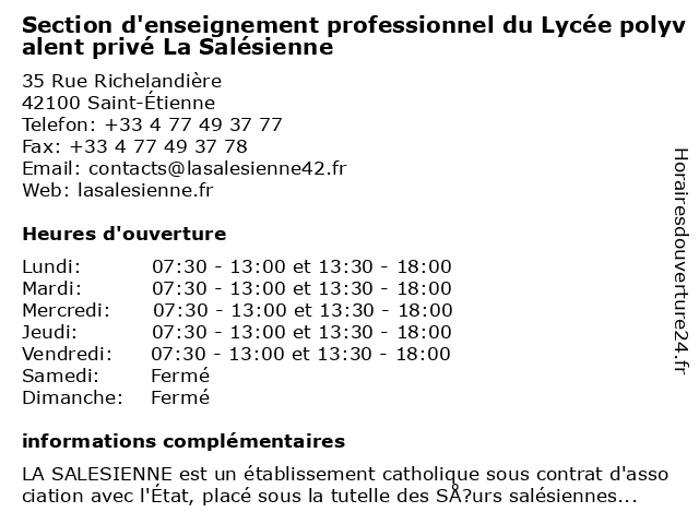 | Lundi | 07:30-13:00 et 13:30-18:00 |