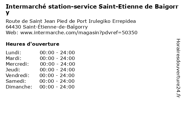 1 Intermarché station-service Saint-Etienne de Baigorry (Distance: 0,35 km) Route Saint-Jean Pied de Port, 64430 Saint-Étienne-de-Baïgorry baigorry, de, etienne, intermarché, saint, service, station 2 Intermarché CONTACT Saint-Etienne de Baigorry (Distance: 0,32 km) Route saint jean pied de port, 64430 Saint-Etienne de Baigorry baigorry, contact, de, etienne, intermarché, saint 3 INTERMARCHE Contact Saint-Etienne de Baigorry (Distance: 0,33 km) Irulegiko Errepidea, 64430 Saint-Étienne-de-Baïgorry baigorry, contact, de, etienne, intermarche, saint 4 ETIENNE BRANA SARL (Distance: 8,15 km) 3 Avenue du Jai Alai, 64220 Saint-Jean-Pied-de-Port brana, etienne, sarl 5 Intermarché station-service Ispoure (Distance: 8,59 km) Cd 933, 64220 Ispoure intermarché, ispoure, service, station 6 Intermarché Station Service (Distance: 9,62 km) - Route Saint-Jean Pied de Port, 64430 Saint-Etienne de Baigorry automobiles, essences, intermarché, oil, service, services, station, stations |