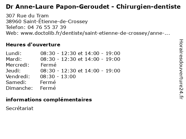 | Lundi | 08:30-12:30 et 14:00-19:00 |