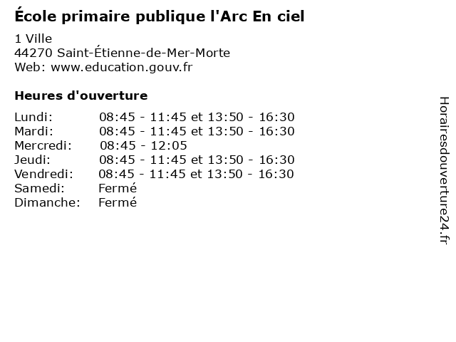 | Lundi | 08:45-11:45 et 13:50-16:30 |
