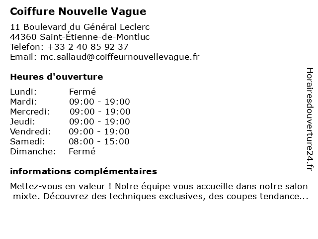 1 Exclusif Coiffure (Distance: 0,82 km) . Route de Coueron, 44360 Saint Etienne De Montlucan beauté, coiffeur, coiffure, exclusif, salons de coiffure 2 Passion Coiffure (Distance: 12,00 km) 23 Rue Robert le Ricolais, 44700 Orvault balayage, coiffeur, coiffure, coloration, coupe, mèches, passion 3 Virtual Coiffure (Distance: 13,67 km) 8 Avenue des Thebaudieres, 44800 Saint-Herblain beaute, bijoux, chaussures, coiffure, etam, lingerie, maison, mode enfant, mode femme, mode homme, restaurant, sport, virtual 4 Exclusif Coiffure (Distance: 15,41 km) 10 Rue Georges Clémenceau, 44260 Savenay beauté, coiffeur, coiffure, exclusif, salons de coiffure 5 Avenue 24 Coiffure (Distance: 16,11 km) 24 Rue de nantes, 44830 Bouaye 24, avenue, avenue 24, bouaye, coiffeur, coiffure 6 Mille et une Couleurs Coiffure (Distance: 16,40 km) 6 Place armand fallieres, 44000 Nantes coiffeur, coiffure, couleurs, et, mille, mille et une couleurs, nantes, une |