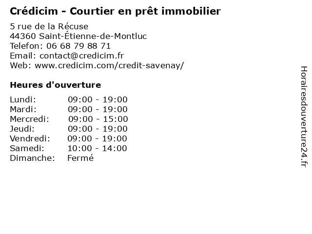 Horaires d'ouverture |
