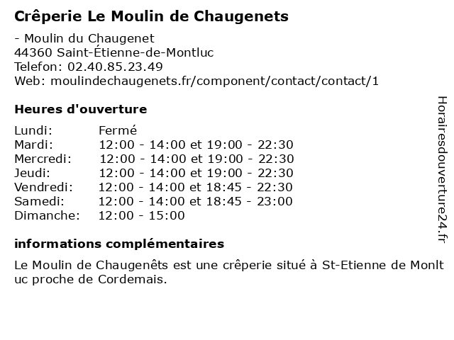 | Mardi | 12:00-14:00 et 19:00-22:30 |
