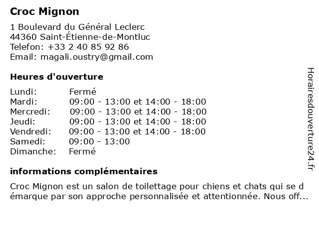 | Lundi | Fermé |