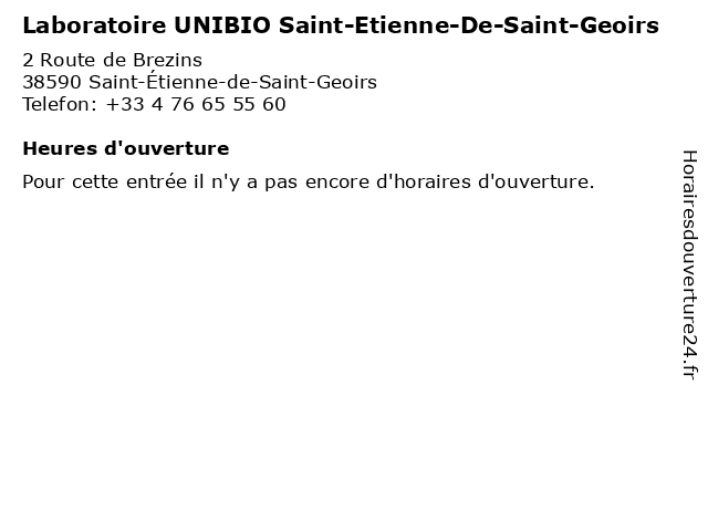 | Appeler Laboratoire UNIBIO Saint-Etienne-De-Saint-Geoirs | |