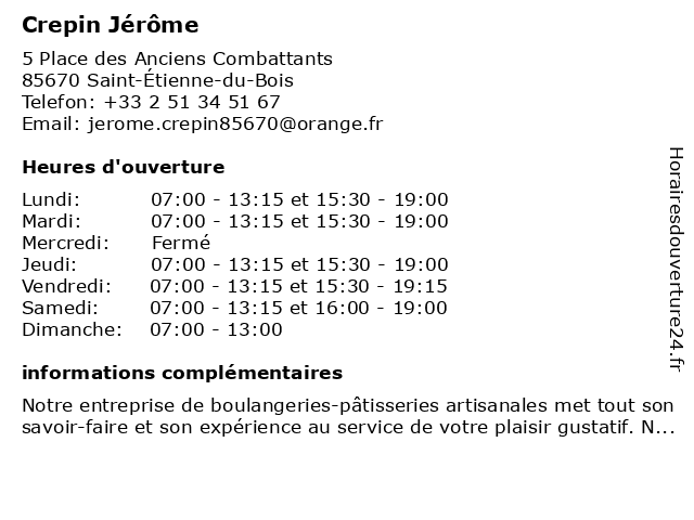 | Mercredi | Fermé |