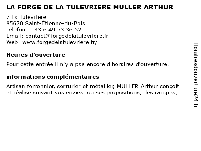 | Appeler LA FORGE DE LA TULEVRIERE MULLER ARTHUR | |