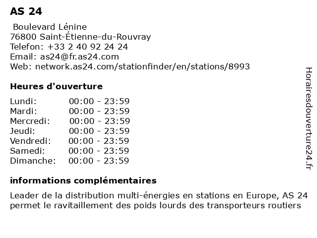 1 AS 24 (Distance: 6,96 km) Avenue Franklin Roosevelt, 76120 Le Grand-Quevilly 24, ad blue, as, diesel, gas station for truck, gnr, hvo100 2 AS 24 (Distance: 7,92 km) 34 Boulevard du Midi, 76100 Rouen 24, ad blue, as, diesel, gas station for truck, gnr 3 As de Coeur - La Nouvelle Enseigne (Distance: 0,51 km) 10 avenue Olivier Goubert, 76800 Saint-Étienne-du-Rouvray accessoires, as, boutique, coeur, de, enseigne, femme, la, mode, nouvelle, vêtements 4 Thevenin & Ducrot - Avia (libre service 24/24) (Distance: 4,66 km) 10 Boulevard Industriel, 76300 Sotteville-lès-Rouen 24/24, accessoires, avia, ducrot, libre, motos, service, services, stations, thevenin, voitures 5 AS Auto Sécurité Contrôle technique Sotteville Les Rouen (Distance: 4,87 km) 5 Boulevard Industriel, 76300 SOTTEVILLE LES ROUEN - ZONE INDUSTRIELLE as, auto, contrôle, les, rouen, sotteville, sécurité, technique 6  |