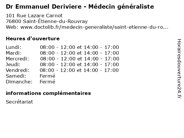| Lundi | 08:00-12:00 et 14:00-17:00 |