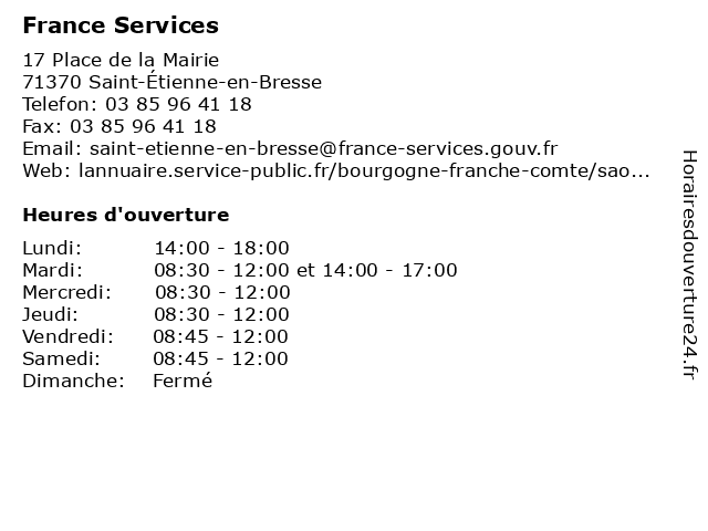 | Mardi | 08:30-12:00 et 14:00-17:00 |