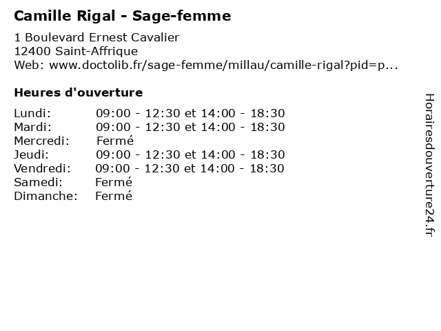 | Lundi | 09:00-12:30 et 14:00-18:30 |
