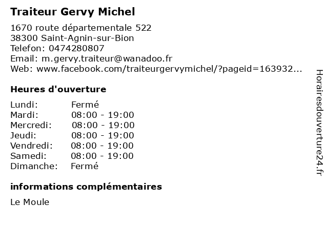 | Lundi | Fermé |