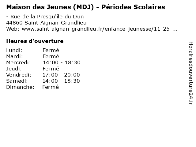 | Mercredi | 14:00-18:30 |