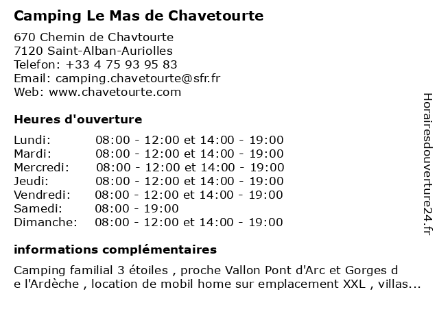 | Samedi | 08:00-19:00 |