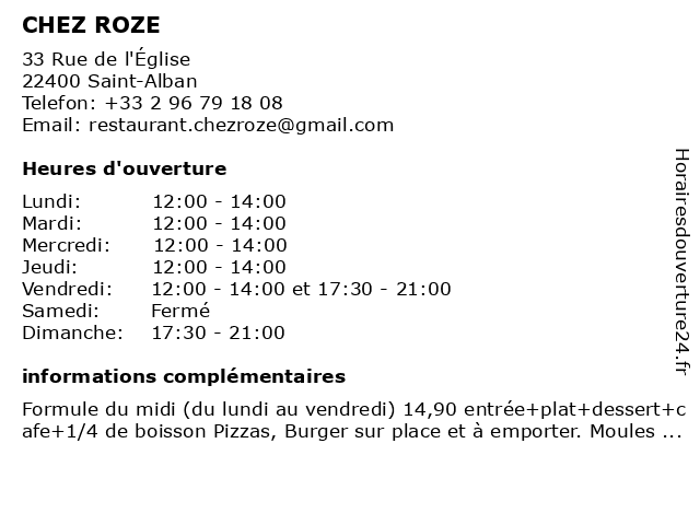 Horaires d'ouverture |