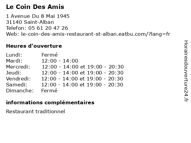 | Lundi | Fermé |