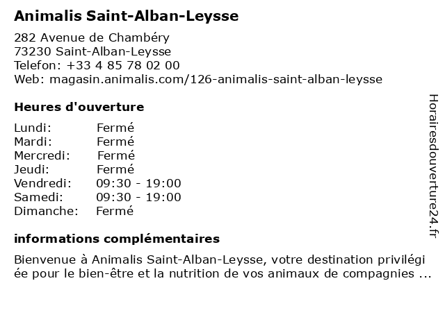 1 Animalis Drumettaz-Clarafond (Distance: 10,48 km) 168 Avenue du Golf, 73420 Drumettaz-Clarafond animalis, clarafond, drumettaz |
