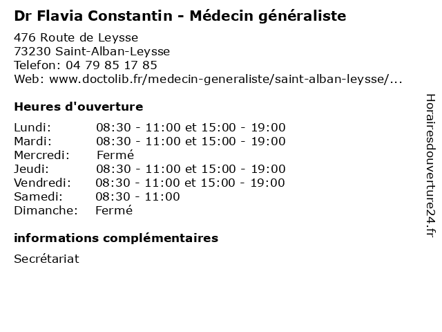 1 Dr Marius-Florin Constantin - Radiologue (Distance: 32,06 km) 1 Rue de la Foret, 74150 Rumilly constantin, consultation, docteur, dr, florin, marius, med, médecin, radiologue, traitement 2 Cafe Tabac Constantin (Distance: 45,00 km) Grand Plan, 73300 Albiez Montrond cafe, constantin, restaurants, tabac 3 Dr Laura Carlot - Médecin généraliste (Distance: 0,67 km) 1 Avenue des Salins, 73230 Barby carlot, docteur, dr, generaliste, généraliste, laura, medecin, médecin, soins 4 Dr Stéphanie Marteau Labussiere - Médecin généraliste (Distance: 0,67 km) 1 Avenue des Salins, 73230 Barby docteur, dr, generaliste, généraliste, labussiere, marteau, medical, médecin, soin, stéphanie 5 Dr Anne-Laure Marsande - Médecin généraliste (Distance: 0,67 km) 1 Avenue des Salins, 73230 Barby anne, docteur, dr, generaliste, généraliste, laure, marsande, medical, médecin, soin 6 Dr Romain Clavelin-Truchon - Médecin généraliste (Distance: 0,67 km) 1 Avenue des Salins, 73230 Barby clavelin, docteur, dr, generaliste, généraliste, medical, médecin, romain, soin, truchon |