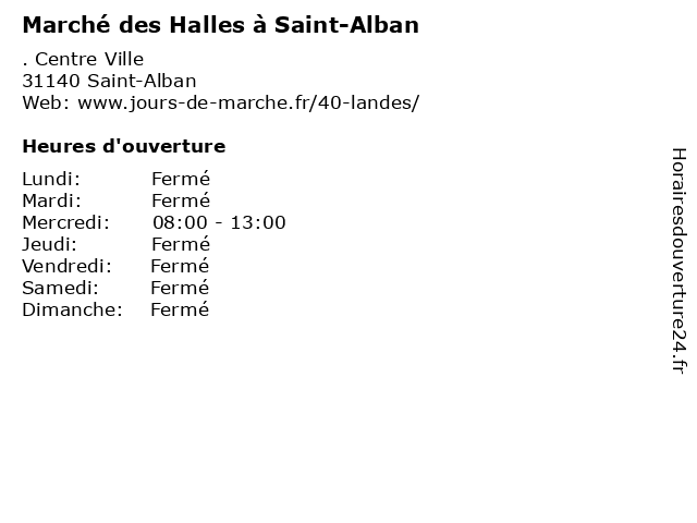 | Mercredi | 08:00-13:00 |