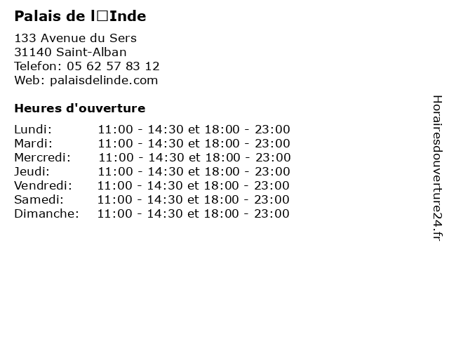 | Samedi | 11:00-14:30 et 18:00-23:00 |