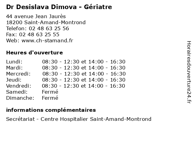 Termes de recherche pour Dr Desislava Dimova - Gériatre:saint, amand, montrond, centre, age, hospitalier, dr, gériatrique, gériatrie, gériatre, desislava, dimova, fragiles |