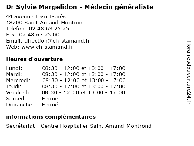 | Lundi | 08:30-12:00 et 13:00-17:00 |