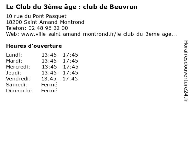 | Samedi | Fermé |