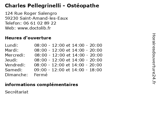 | Lundi | 08:00-12:00 et 14:00-20:00 |