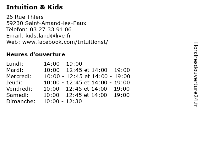 | Mercredi | 10:00-12:45 et 14:00-19:00 |