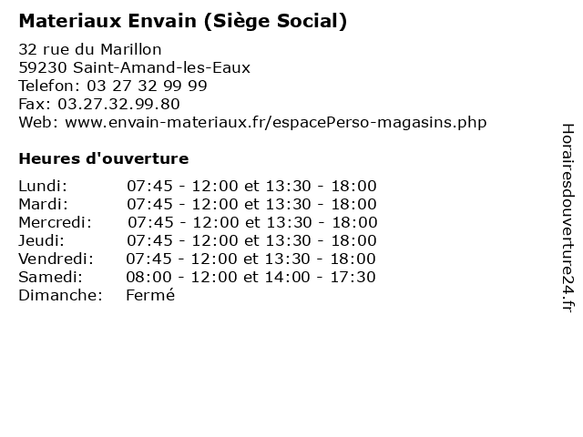 Samedi | 08:00-12:00 et 14:00-17:30 |