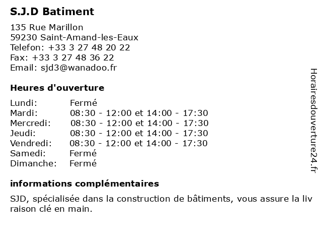| Mardi | 08:30-12:00 et 14:00-17:30 |