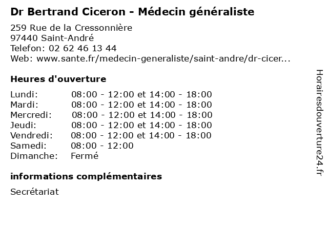 1 Exco Bertrand & Associes (Distance: 19,94 km) 216 Boulevard Jean Jaurès, 97490 Sainte Clothilde associes, bertrand, cabinet, comptable, comptes, contrôles, exco, expertise, finances, gestion, reporting 2 Dr Bertrand Guihard - Médecin généraliste (Distance: 23,29 km) - Allée des Topazes, 97400 Saint-Denis bertrand, consultation, docteur, dr, guihard, généraliste, med, médecin, traitement 4 Dr Bertrand Levy - Médecin généraliste (Distance: 44,05 km) 1 Rue Eugène Dayot, 97410 Saint-Pierre bertrand, consultation, docteur, dr, généraliste, levy, med, médecin, traitement 5 Dr Thomas Pierre Bertrand - Médecin ORL (Distance: 45,47 km) - Avenue François Mitterrand, 97448 Saint-Pierre bertrand, chu, cilaos, de, dr, joseph, la, laryngologie, le, louis, médecin, orl, oto, pierre, rhino, réunion, saint, sites, st, thomas 6 Dr Bernard Goeury - Médecin généraliste (Distance: 0,12 km) 2 Rue Gabriel Vayaboury, 97440 Saint-André bernard, consultation, docteur, dr, dr., goeury, générale, généraliste, médecin, médecine, santé |