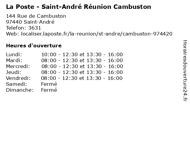 Termes de recherche pour La Poste - Saint-André Réunion Cambuston:poste, relais, la, saint, andre, agence, reunion, postale, colis, expédition, courriers, cambuston |