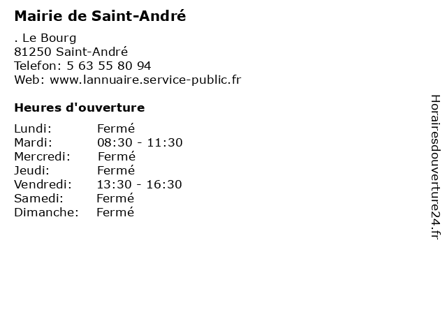 Termes de recherche pour Mairie de Saint-André:de, saint, andre, administration, mairie, assoc public |