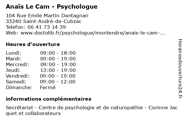 Termes de recherche pour Anaïs Le Cam - Psychologue:le, folie, anais, cam, psychiatrique, psychiatrie, psychologue, psychiatre |
