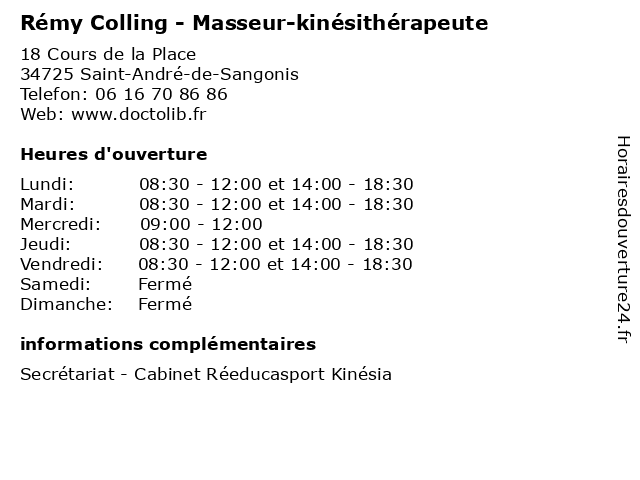 | Mardi | 08:30-12:00 et 14:00-18:30 |