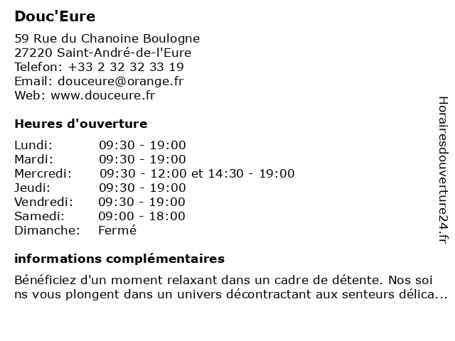 | Mercredi | 09:30-12:00 et 14:30-19:00 |