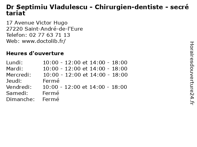 | Lundi | 10:00-12:00 et 14:00-18:00 |