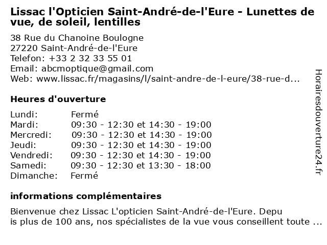 | Mardi | 09:30-12:30 et 14:30-19:00 |