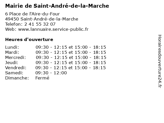 Termes de recherche pour Mairie de Saint-André-de-la-Marche:la, de, saint, andre, marché, administration, mairie, assoc public |