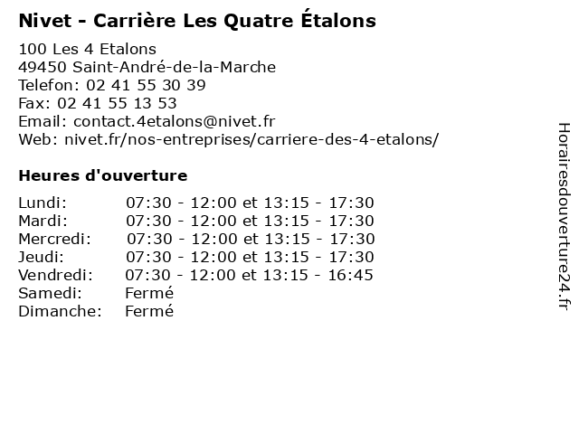 | Vendredi | 07:30-12:00 et 13:15-16:45 |