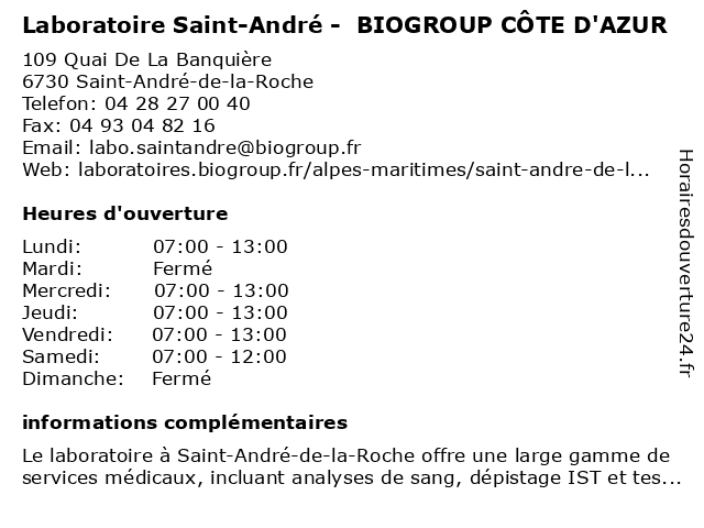Termes de recherche pour Laboratoire Saint-André - BIOGROUP CÔTE D'AZUR:saint, andre, laboratoire, cote, d'azur, biogroup, dépistages, laboratoire de diagnostic |
