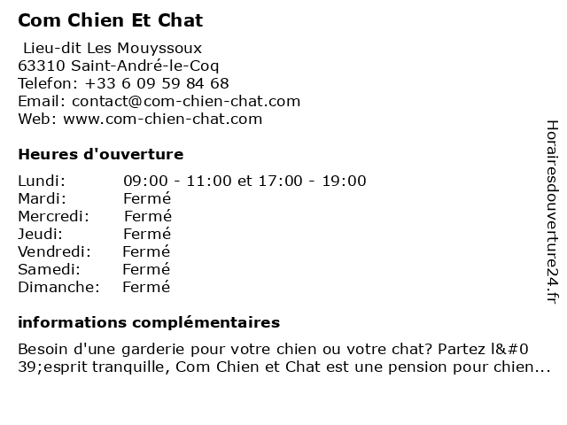 | Lundi | 09:00-11:00 et 17:00-19:00 |