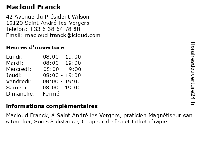 | Lundi | 08:00-19:00 |